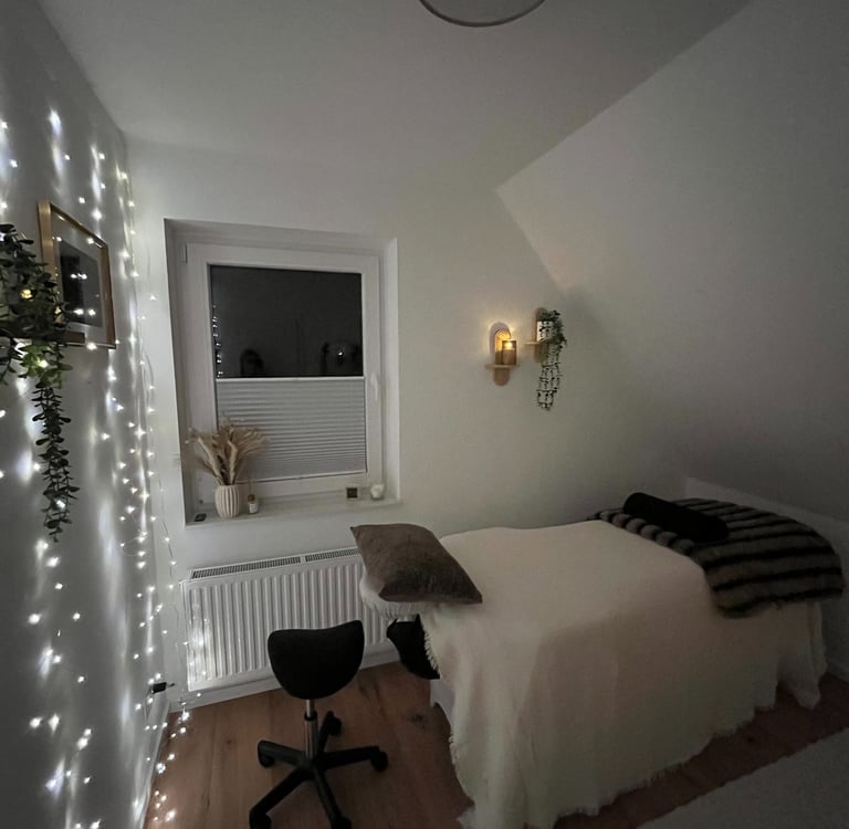 In meinem gemütlichen Zuhause habe ich einen kleinen, liebevoll gestalteten Raum geschaffen, in dem Entspannung, Ruhe und persönliches Wohlbefinden im Mittelpunkt stehen.