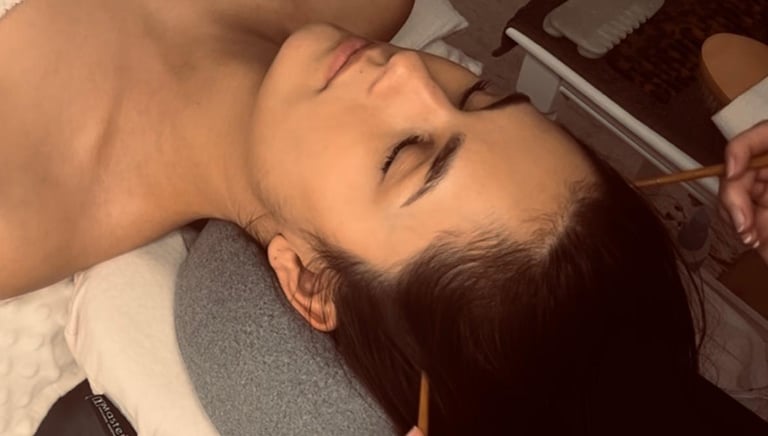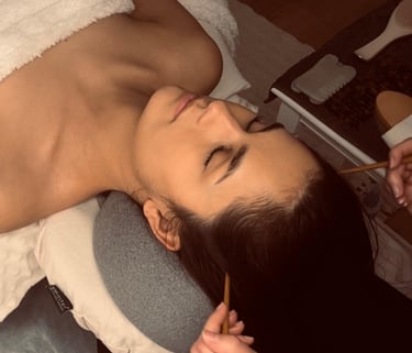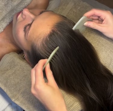 Mit ausgewählten Tools und einem leichten, pflegenden Öl gleite ich sanft über deine Kopfhaut, durch dein Haar und leicht über den oberen Rücken und das Dekolleté. Diese besondere Form der Berührung sorgt für ein beruhigendes Kribbeln, das dich tief entspannen lässt.